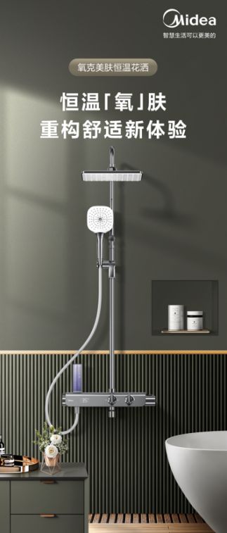 作为厨热领域的先行者,美的将眼光聚焦到花洒上,其创新推出的氧克美肤恒温花洒,不仅大大提升用户沐浴舒适体验,而且具备美肤功效,更好的满足了用户对健康护肤的追求,将人们的沐浴品质生活再度提升一个台阶。氧克,一款出水就能美肤的花洒,将开启美肤沐浴新时代,时刻守护用户健康肌肤,让每个人的肌肤都能焕发水润光彩。