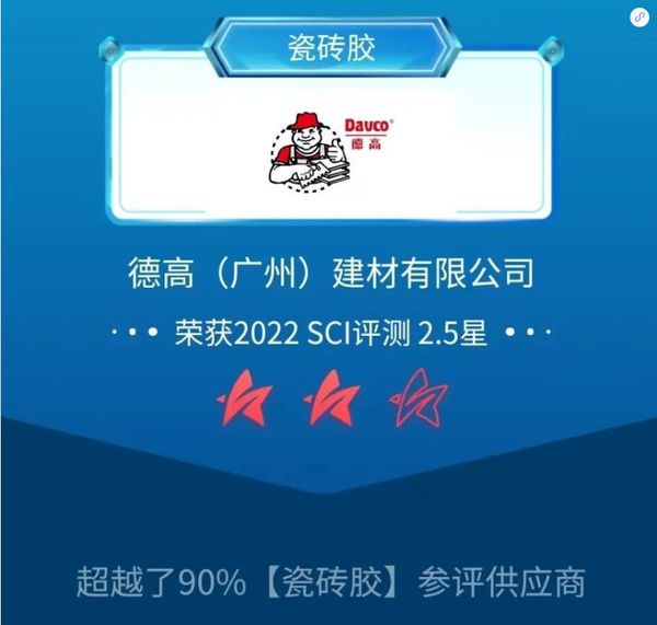 采筑2022供应商综合指数SCI重磅发布!西卡德高喜获瓷砖胶品类榜单第一名