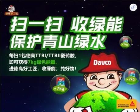 购买德高瓷砖胶(活动版),扫码可领工具和红包,还可收绿色能量,积攒能量可免费兑换巧匠豪华工具!