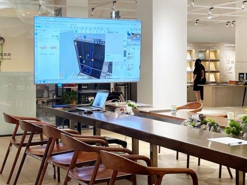 作为项目试点门店,斯可馨太仓店设计主管宋小凡率先体验了数字化转型带来的效率魅力。“在模型库里拖拉产品即可完成设计方案,然后一键渲染出图,甚至可以一键生成视频、一键下单”,宋小凡认为这能大大简化设计繁琐的日常工作。