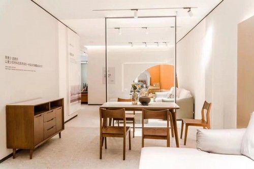 从产品研发端开始,以多品类的整体套系研发理念出发,设计新品。在门店形态,从原来300-500平方米系列店整合成1500-2000平方米综合大店,设置1:1样板间展厅、选材区、设计区,提供一体化服务。门店配备专业设计师,提供包括成品、定制在内的全案设计服务。“单纯的产品销售模式已不能满足人们对美好生活的向往,空间整体氛围会成为第一诉求”,胡楚辉谈及店态迭代时表示。