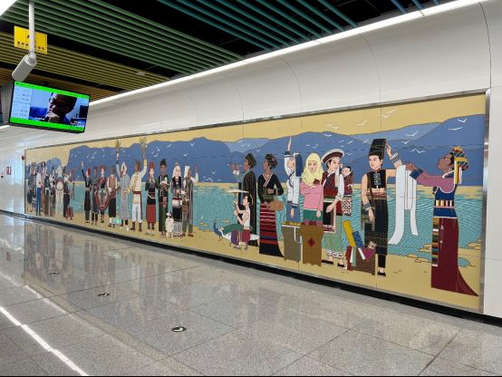 一方水土,一方文化。一方山水,一方风情。昆明地铁5号线渔户村站的马可波罗文化陶瓷艺术壁画,以民族团结进步为主题,为城市地铁公共空间描绘了一派和谐幸福的生活景象。
