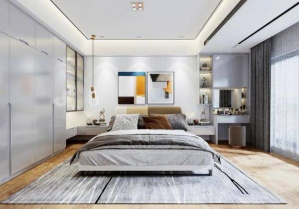 悬空式床头柜比落地床头柜更轻巧,整体感也更强。它兼具美观性和实用性,不仅减少了卧室的厚重感,打扫卫生的时候也不需要再将床头柜搬来搬去。