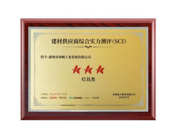 本次SCI综合测评共有1200多家供应商,行业权威机构围绕“真实.数据”基于采购方业务关注点提取8大维度,55个细分指标对供应商进行全面评价,据悉,“三星供应商”为该项测评的最高等级,其中仅99家供应商获得“三星供应商”称号,占比率仅为8.2%。西顿照明荣幸获得采筑供应商综合指数SCI“三星供应商”奖项,从数余家参评企业中脱颖而出,这对西顿来说意义非凡,不仅代表着行业权威机构对西顿照明产品、品牌、服务能力、社会责任等全方位的肯定与嘉奖,更将成为激励西顿照明未来发展的动力。