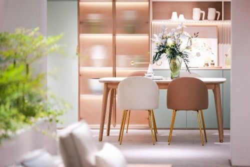 在现场体验可以看到,雅典娜系列产品将古典与现代结合,加上粉色与中性灰色的搭配,通过简约的几何细节贯穿与亲和的色彩互动,便可让家呈现出恰如其分的古典底蕴,使得整个空间层次更显鲜明,展现了闲适与温情的生活氛围。而天鹅湖系列则传达一种生活态度,追求奢华品质却不过度浪费,奢而不华,简而不凡,给人以低调中透着大气的氛围。