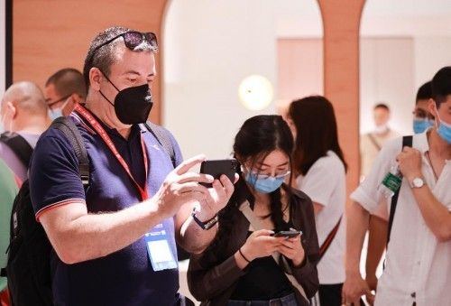 与此同时,在空间营造上以一日「时境」为设计理念,联动五大展出产品构建晨、昼、暮、夜、晓5大家居空间。各大空间围绕与展馆风格同色系的洽谈区比邻而建,一条简明动线贯穿营造简洁舒适的氛围,并利用暖光烘托家居的氛围,还原美好生活人居体验。在逛展过程中,观众们在现场纷纷拍照记录,亲身体验沉浸式的家居场景,将本次新品与美好生活串联,感受真正的理想空间。