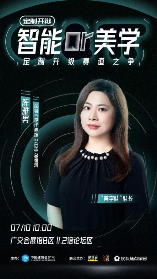本次论坛分享将以辩论战队的形式呈现,由搜狐焦点家居华南主编周婷任智能队队长,深圳《现代装饰》杂志总编辑陈雅男任美学队队长。两位队长分别和特邀品牌嘉宾组成两大阵营,战队之间互相切磋,共同交流行业经验,寻求家居发展新商机,引领定制家居潮流新风向。