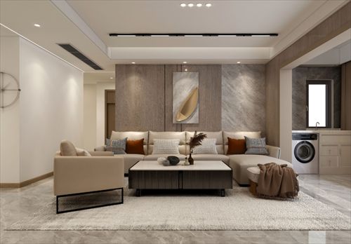 依托整体格局,阳台区内扩出洗衣房,增强空间感,演绎实用性满满的生活美学。沙发背景墙是木饰板结合大理石,质朴之中又见质感,CBD家居·智慧 | Z073沙发,暖色调皮质流露出高级感,分段式靠包饱满软弹,纤薄扶手设计感十足,将艺术融入生活~