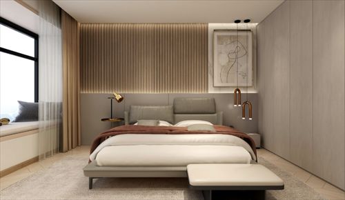 浅咖色系铺陈于室,深浅变化有致,丰富整体色彩美感,成就一方宁静,极简护墙板,挂画增强艺术气质。CBD家居·智慧 | Z089软床,靠包头枕、腰枕分区,精准承托,靠享舒适,更得人心。
