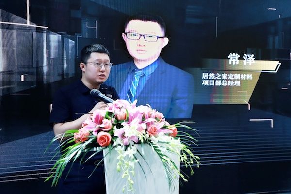 居然之家定制材料项目部总经理常泽上台致辞,以前瞻视角解读市场环境趋势,表达对新标门窗满满的肯定与未来的期待,表示将会大力支持新标门窗以推动行业发展。