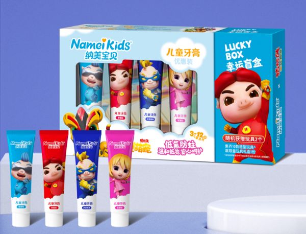 家长们除了要掌握这些基本的口腔护理知识,还要监督宝宝从小养成清洁口腔、好好刷牙的好习惯。这款专为3~12岁儿童研制的纳美宝贝儿童牙膏,将宝宝喜爱的“猪猪侠”卡通形象融入到包装上,购买牙膏可随机获赠猪猪侠系列玩具,让“猪猪侠”陪伴宝宝每天认真刷牙~