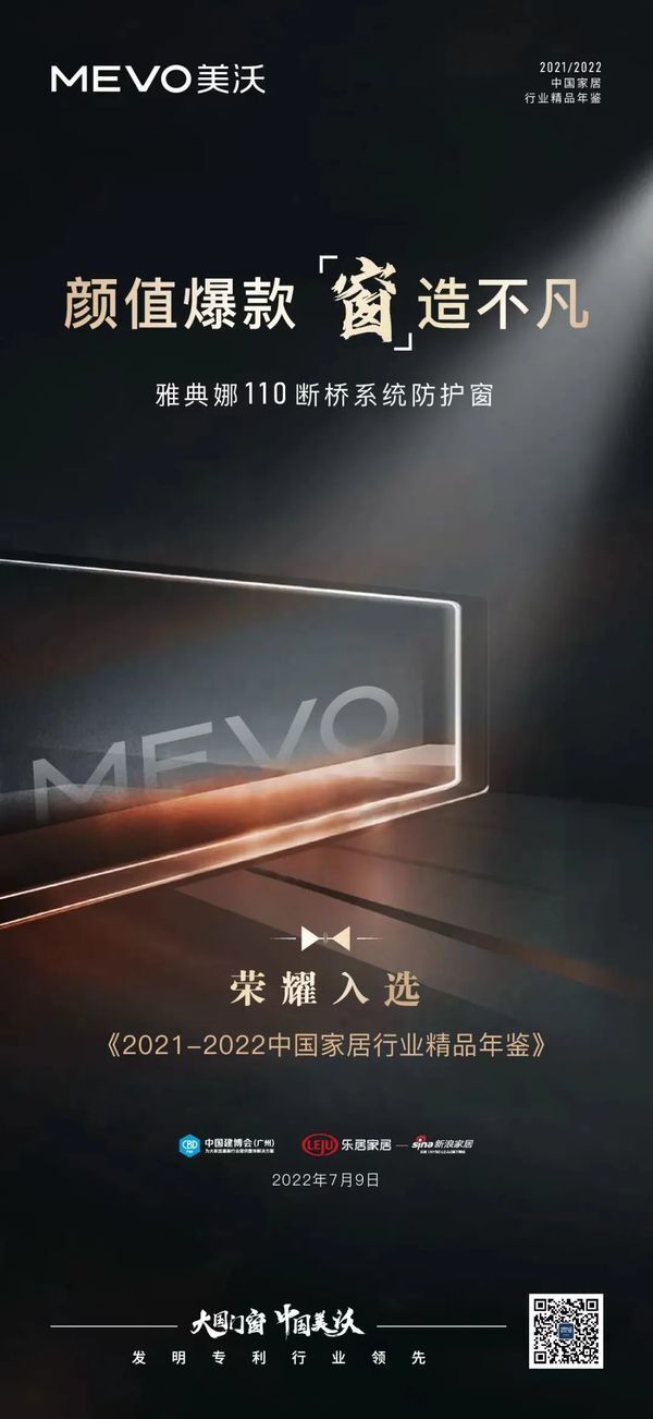 美沃雅典娜110断桥系统防护窗能够脱颖而出、荣登《2021-2022中国家居行业精品年鉴》,彰显了广大消费者对美沃产品的创造力和品牌影响力的高度认可,也激励着美沃门窗不断向前,持续研发高品质系统门窗,以匠心致敬情怀,以品质铸就美好人居,于行业于社会发挥积极正面的品牌效应。