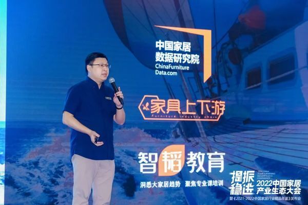 上图为CFD中国家居数据研究院院长蒋健先生作《从全屋到整装,从产品到服务》主题演讲。