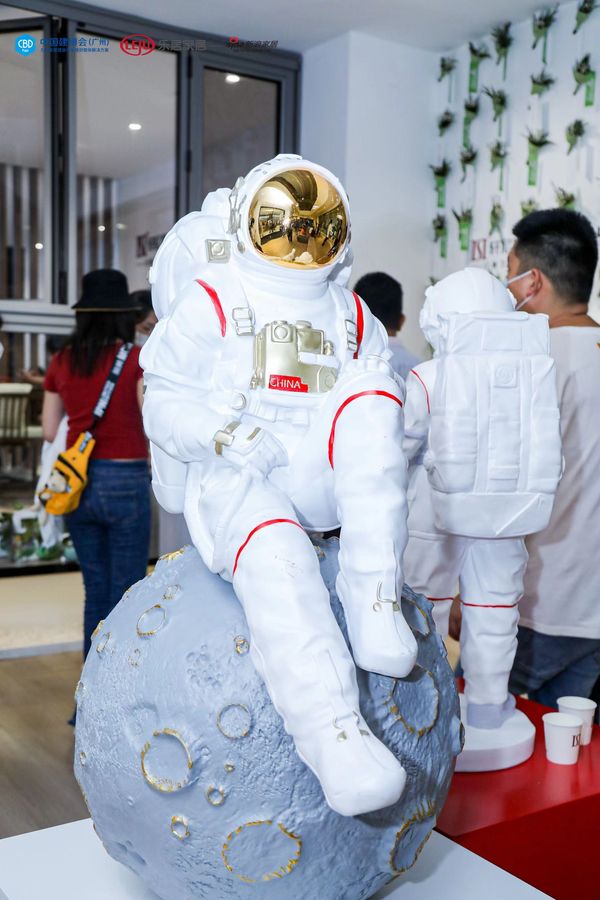 一方面,展厅内外的设计有许多可圈可点之处。展厅内的“轩尼斯门窗阳光生活打卡点”以及众多航天元素的摆件都成为参展观众必去之处,这也符合轩尼斯门窗对外界展示的具有现代科技感的形象。