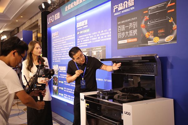 本次大会上,优格作为海宁一体化厨具行业的代表性企业参与其中,并在展会上展示了设计前瞻、智能制造的重磅新品——左烤右蒸天健G28ZK集成灶。
