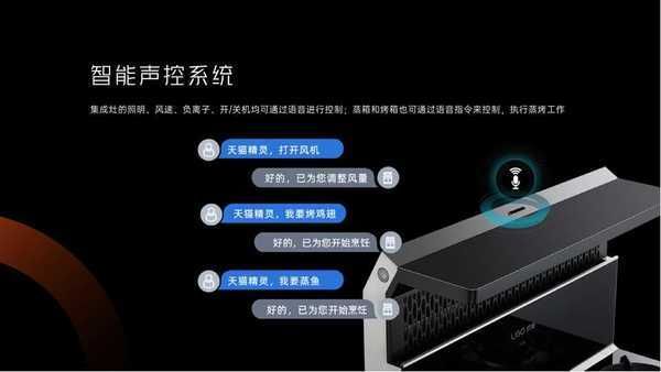 这款集成灶搭载了AI语音交互功能,海量功能都可以直接由语音指令来实现,只需要直接对着集成灶说:“天猫精灵”,即可唤醒语音模块。集成灶的照明、风速、负离子、开/关机均可通过语音进行控制。蒸箱、烤箱缺水或者出现异常天猫精灵都会进行语音播报。有了它,厨房必定会欢乐有趣起来的。当然,作为集成灶,它的本职工作也能完成的很好。高效吸油烟、爆炒大火力、便捷清洁、多重安全功能等让您轻松下厨。
