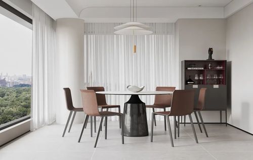 质感皮具椅凳、随性不规则家具在柔光中更显温馨感,让空间充满岁月静好的意境。