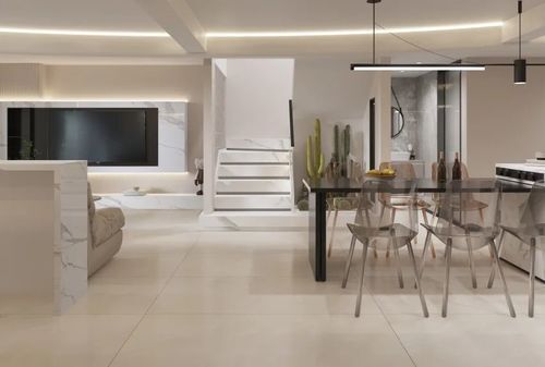 高压力、快节奏生活给我们带来疲惫。而家,就是舒缓身心的地方。顺辉瓷砖·岩板750x1500mm柔光砖温润细腻,与棉麻布艺、原木色以及低饱和色系等家具搭配,给空间带来更具温润、自然的气息。