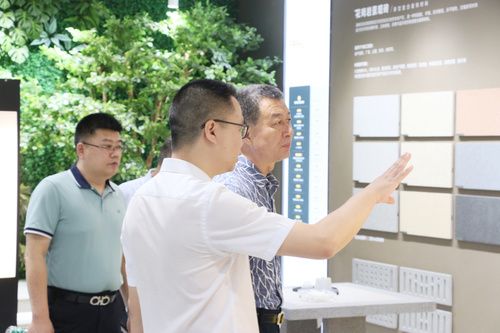 山东盛隆置业有限公司考察团在顺辉瓷砖·岩板南区销售总监刘伟成的带领下对顺辉瓷砖·岩板总部进行参观考察,感受不同风格瓷砖的独特美感、瓷砖应用与设计碰撞的美学。
