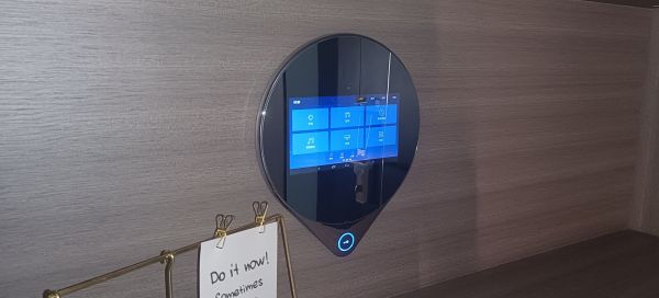 智能魔镜 不仅可一键控制家中的灯光、窗帘、空调等家居设备,还可绑定体脂称、血压仪、血糖仪等健康设备,实时监测业主的每日健康数据。此外,它还可作为楼宇对讲室内分机使用,为业主提供可视对讲、电梯控制等功能,实现智慧家庭与智慧社区的联动。