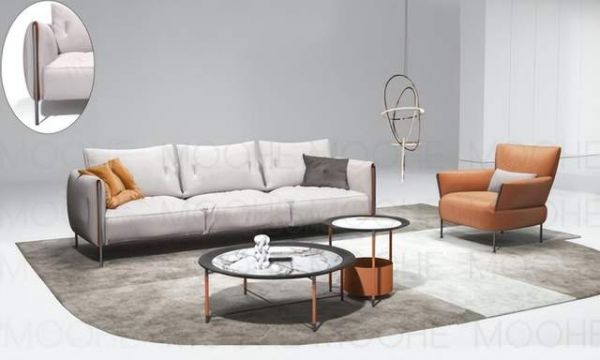 沙发细节处的凹点,是大自然中雨滴倾泻的形态。温暖跳跃的橙色,是跟随雨水一起飘下的秋叶。起伏蜿蜒的线条,是雨水汇流绵延的柔情。沙发展现的是忙碌的生活节奏下,慵懒而愉悦的生活气息,回归自然的写意和时尚个性的追随。高低组合的圆形茶几,如散落于地上的雨水,简约而宁静,营造出不平衡的自然美,提升了整个客厅的层次感,也给客厅再增添一道风景。