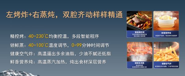 不仅如此,除了空间升级,美大再为新境界赋能烹饪技术升级。不仅以“变频”为核心打造3D变频理想温场,更有AI智能蒸烤技术加持,实现智能变频实时调控,小白也能成为料理大师。双腔齐动样样精通,实现了精控烤、锁鲜蒸、健康空气炸、鲜香营养炖,是蒸烤独立升级,更是全面升级。