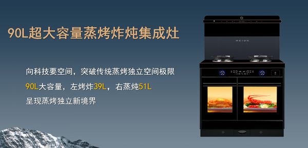 要想实现箱体分割但容量依旧满足日常需求;需要不断升级技术,突破许多现有集成灶技术的壁垒,难度可想而知。而美大不仅关注到了部分消费者蒸烤独立的需求,也洞察到了消费者对于使用空间的需求,凭借其不懈的研发与探索,成功破解了蒸烤独立集成灶容量小的难题,推出90L超大容量蒸烤炸炖集成灶,左烤炸+右蒸炖,双腔齐动样样精通,呈现蒸烤独立新境界,突破传统蒸烤独立空间限制,向科技要空间。既实现了蒸烤独立,又能轻松容纳多种食材,各种美食烹饪,一次搞定。