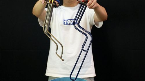 再来看加热棒。加热棒材质的好坏,直接关乎加热性能和水垢问题,同样不能忽视。测评实验中,将两款加热棒同时放入高浓度的三氯化铁溶液,经过120个小时的浸泡发现,采用310S不锈钢材质的普通加热棒,其尾端已被溶液腐蚀溶解,而采用锆金材质的Leader加热棒没有明显变化。通过对比,Leader加热棒耐腐蚀性更强。