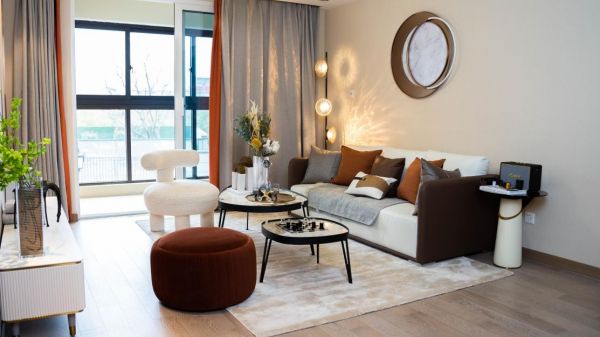 沙发、茶几、休闲椅,共同组成了奢适待客空间。其中沙发采用仿真皮科技布,柔软,透气还耐脏,这些全都是艾佳生活装修的“全品家”服务。