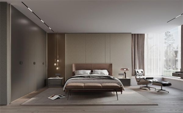在以简洁线条为主的卧室空间里,金属与柔和皮革的结合点缀,正体现出SCHMIDT司米家居为居住者提供的新生活品质。