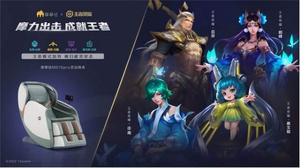 摩摩哒与王者荣耀跨界合作,一共推出M610pro黑金系列、灵动森系及梦幻治愈系列按摩椅。三大系列产品,分别对应不同英雄定位,以形象生动的方式探索养生真谛,以“团队配合”取胜养生战场,彰显“峡谷之内,唯我独尊”的气概。