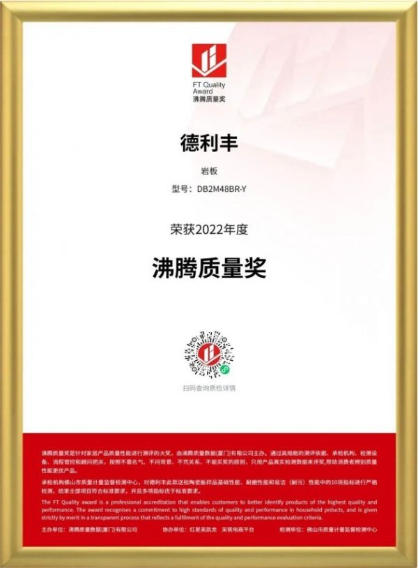 2022年上半年,德利丰岩板保持了稳健增长态势,并在品牌、渠道、产品等多个维度火力全开:5月,开创性成立交付运营中心;7月,在广州建博会上实力出圈;在渠道方面,强势推出“大干180天”渠道扩展计划;在产品方面,MINI系列强势面世,为高端家庭量身定制“更合适”的岩板应用系统。值得一提的是,凭借硬实力,过去半年德利丰产品先后荣获“美国NSF食品设备认证”、“2022上半年度沸腾质量奖”等多项荣誉。