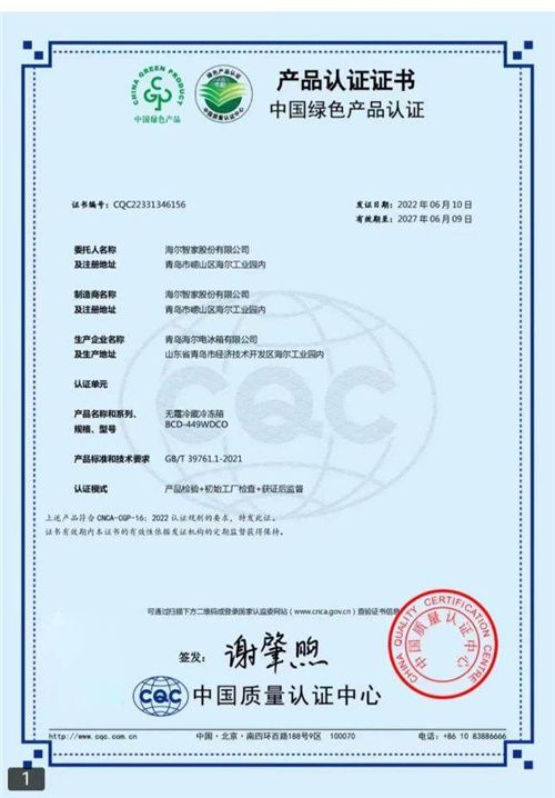 冰箱行业首个“中国绿色产品认证”,为何给了海尔?