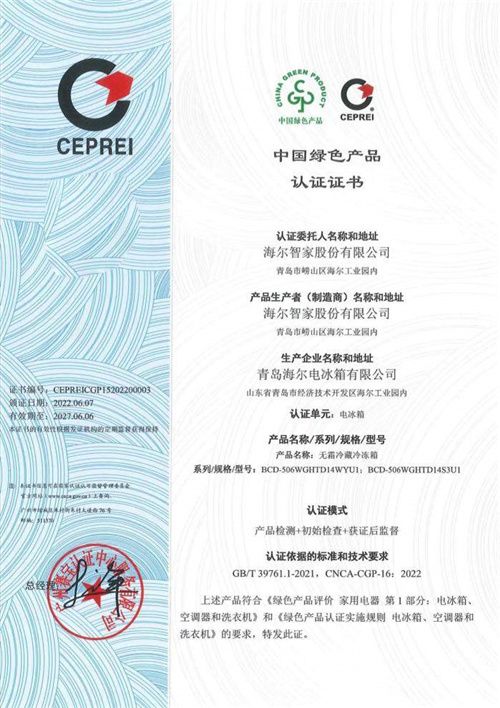 从“造”到“用”,海尔冰箱多款产品全流程通过认证标准,并得到了中国质量认证中心、中国家用电器研究院、威凯认证检测有限公司、合肥通用机械产品认证有限公司、广州赛宝认证中心服务有限公司5大权威机构的全面认可。