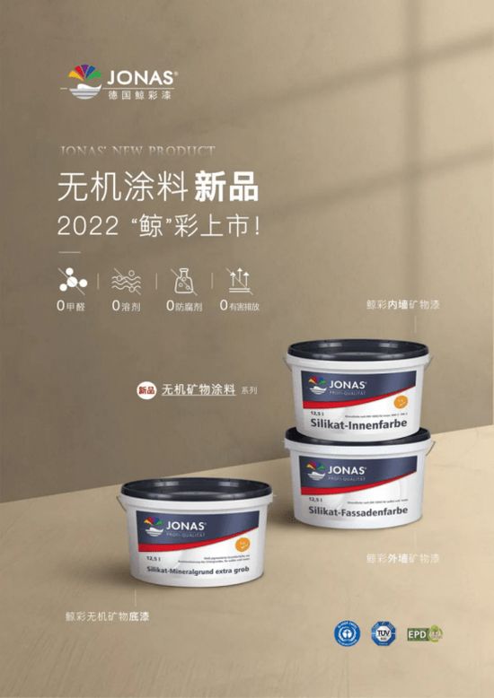 例如,2022年4月,公司敏锐把握市场需求,将JONAS德国鲸彩漆一系列新品引入国内。其中,硅酸盐系列的三款无机矿物内墙涂料新品以及一款丙烯酸外墙漆——莱茵超级外墙漆,可以说很好地贴合了当下热度渐起的高端涂料品类发展趋势。