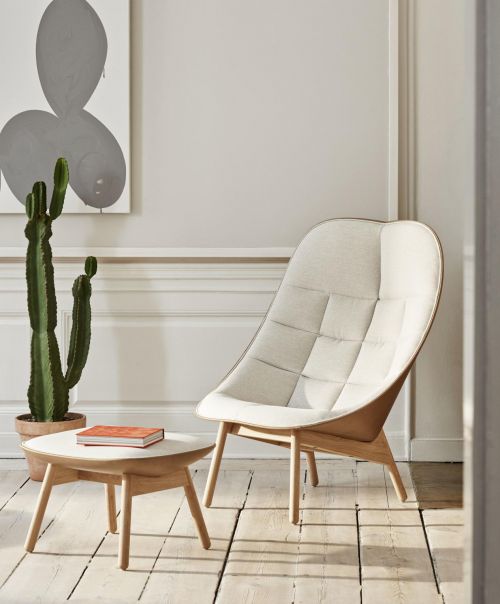 Uchiwa 特为不同的生活空间打造了两种版本的软垫选择:柔软的绗缝模型借几何线条建立起趣味感,适合舒适惬意的居家空间;铸型泡棉软垫则以光滑流畅感为商务办公空间呈现高品质的环境氛围。天然和染色橡木两种木腿的选择亦能带来不同观感。