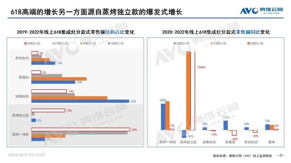 前段时间结束的618年中促销,集成灶行业高端化趋势明显显现。根据统计机构数据显示,2022年618集成灶线上市场均价8698元,同比增长12%,12000元以上高端产品零售额结构占比25%,同比增长14%。