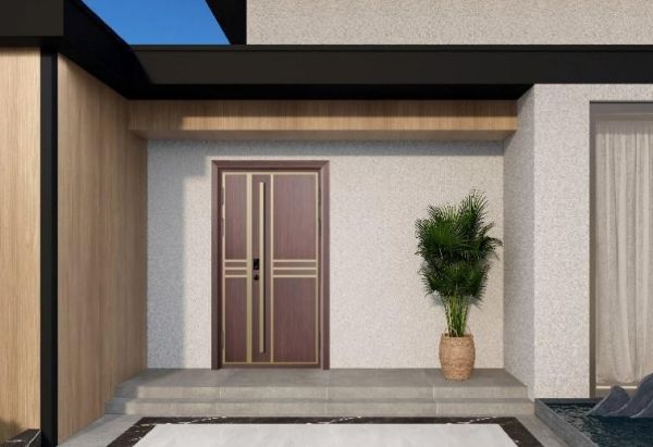 萨尼亚系列铜门镶嵌着黄铜设计,让空间更具设计感。精湛的工艺和利落的线条相互映衬,打造层次感丰富的雅致门面。握上黄铜长拉手,轻轻用力便能通往私家庭院,鸟鸣与花香静候着归家之人。