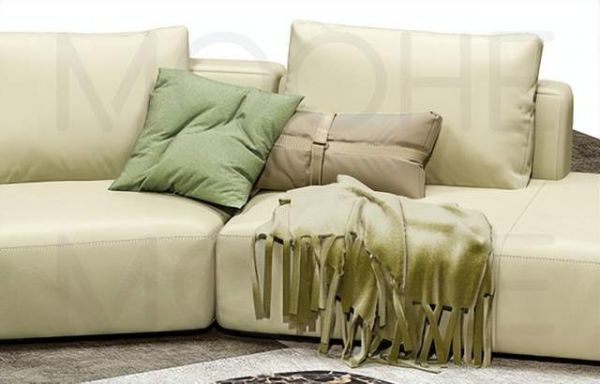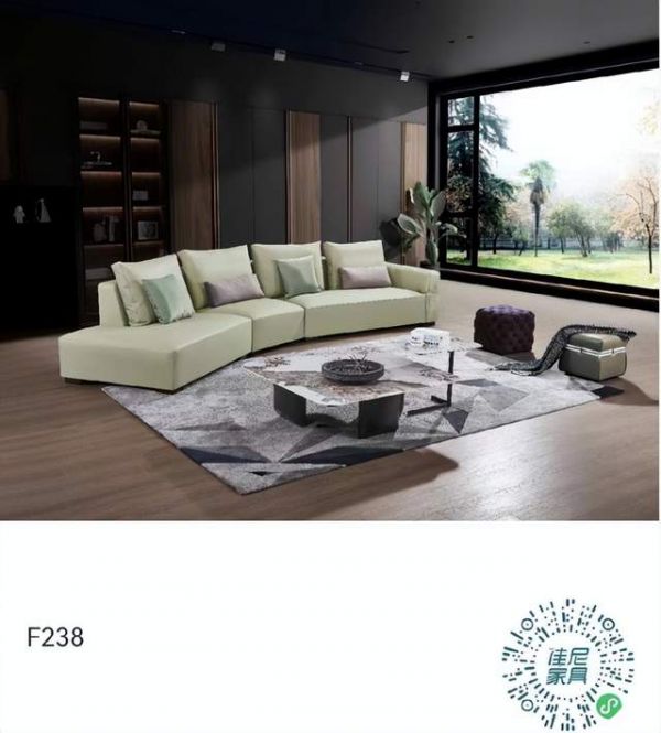 F238沙发,“摩登旷野”系列的代表作之一。沙发以棕绿为底色,运用皮带和流苏元素,碰撞出属于现代生活里的原始与野性。柔和的线条和饱满的触感,又在野性洒脱中揉入了现代式优雅。别出心裁的钻石转角设计,简洁大气,突显着主人随性、时尚的生活主张,传递着令人愉悦的居家舒适感。搭配进口岩板打造的茶几,磅礴浑厚的自然纹理交错,将不拘传统的自然气息注入现代生活。