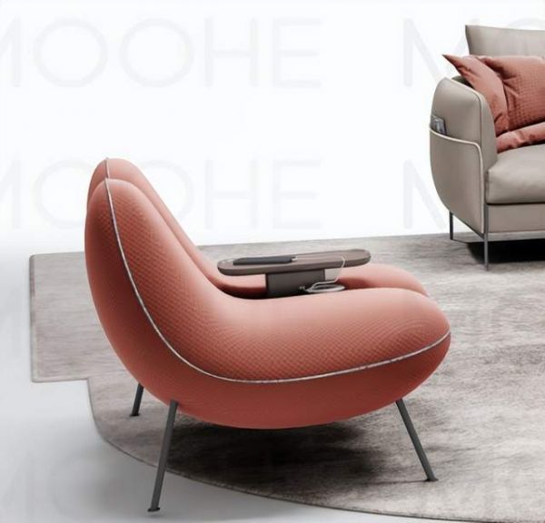 “豌豆甜心”椅以豌豆作为设计灵感,圆润的线条,圆润的造型,与饱满的豌豆极为相似,圆鼓鼓的形状,拥有一种慵懒随意的美感和闲庭信步的从容气质,极具亲和力和视觉冲击力。椅子依据人体工程学进行设计,坐上触感柔软无比,像是一朵云一样的蓬松,加上高雅的用色,赋予生活慵懒优雅的外在。3+贵妃的设计,采用温暖和煦的色调来装点一份温馨惬意的情怀,拥有很高的空间包容度,搭配错落有致的圆形茶几,空间瞬间充满时尚感和复古感。
