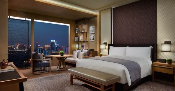 399间重新设计的客房及套房,均以中式元素设计及家具点缀,将香港的丰富文化及传统展现无遗。传统中国山水画与衣柜门融合得天衣无缝,为每间客房注入自然气息,也为香港四季酒店增添全新特色。家具的高雅气质让客房更臻完美,一丝不苟的设计细节则为空间赋予奢华感。床头柜等家具缀有哑光饰面及高度抛光深色饰面,其灵感源自明代家具的优雅抛光饰面。