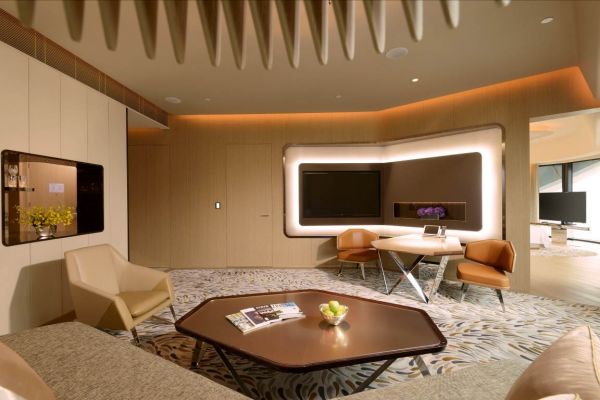 Peter受到独特建筑造型的启发,将“享乐主义生活方式”的原则融入了设计。例如,在酒店客房的设计中加入自己钟爱的超级游艇内部装饰风格,旨在打破陈规,为宾客提供新颖豪华的入住体验。