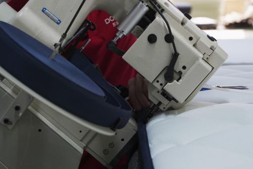 最后,用围边设备包边缝制成床垫成品。东宝床垫整个组合过程使用物理方式进行固定,拒绝使用胶水。