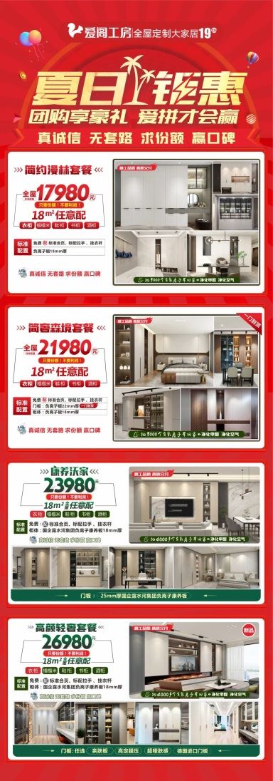 这个夏日,爱阁工房除了征集“爱家”最美代言人,还推出了“夏日钜惠 团购享豪礼”活动,三人即可成团,同享优惠,真心诚意为邻居们奉上一场狂欢钜惠大Party,购实惠,购省钱,购省心,让邻居快速装新房,年底住新家!