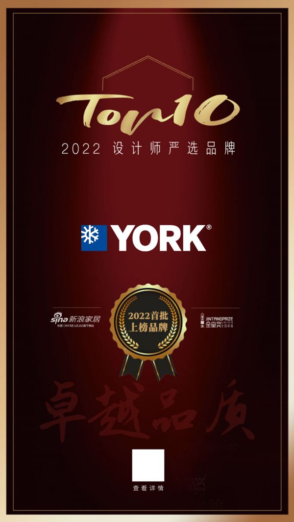 2022年7月19日,「2022 首批设计师严选品牌TOP 10」线上发布会如期举行。凭借对自然美学的完美诠释,以及对高端生活的理想追求,江森自控约克获得设计师评审一致认可,最终荣膺「2022 首批设计师严选品牌TOP10」称号。