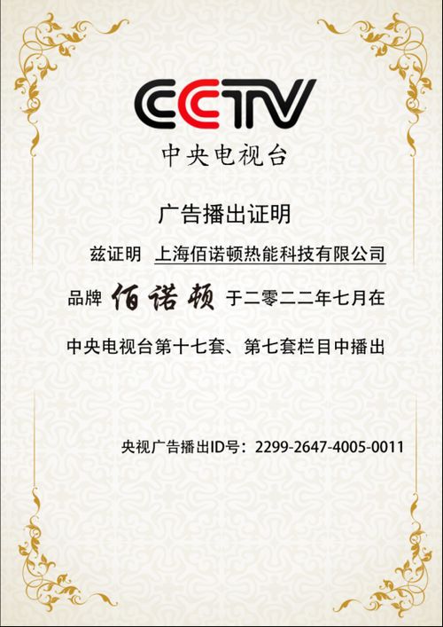 高端品牌,瞩目见证,恭喜佰诺顿燃气热水器荣登CCTV 央视广告权威媒体