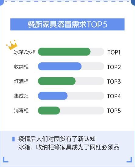 《报告》显示,卧室、餐厨等典型的功能区间,在疫情后的改造中将承载着更多的功能,特别是一些面积较小的房屋,功能融合正在成为趋势。种种趋势的背后,其实也反应了用户久居家中而遇到的诸多痛点。一方面,疫情后人们对食物、物资的需求越发重视,冰箱、冰柜、收纳柜等收纳性质的家具占领餐厨家具添置需求的高地,更有用户一口气装了一排冰箱,由此可见,丰富的物资储备是家装用户宅家期间的主要“安全感”。