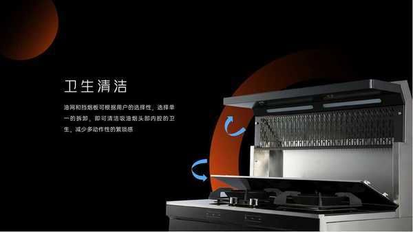 优格集成灶头部挡烟板可以无工具拆卸清洗,颇具人性化,而且加大容量集油盒也延长了清洁周期,不必隔三差五为清洁犯愁。