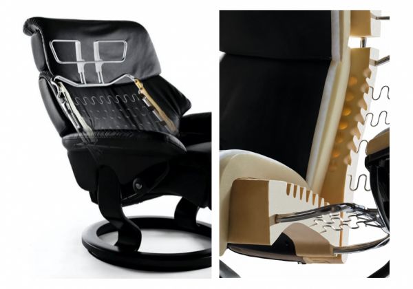 Stressless思特莱斯舒适椅内部的结构,是经过严格挑选的高级合金钢,铸就了经久耐用的品质。框架的结构成型十分考验制造工艺。思特莱斯挪威工厂,配备了多台高精密的工业机械臂来完成钢制内框的成型、焊接、装配等工作,确保了产品一贯的稳固及耐用。同时,它的弯度专为适应个人体型所设计,确保为体验者带来更为舒适的享受。钢结构的特别之处在于,弹簧和钢架之间使用尼龙束带固定,而非焊接处理。这一方面防止了焊接技术导致的钢架断裂,提升了座椅的使用寿命,另一方面也提升了座椅的灵活性。