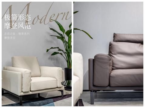 左右沙发专注沙发35年,六大专属工艺,这款极简风范摩登天空,大开张牛皮触感柔滑,靠包极致人体工程学设计贴合承托身体,U型底座全钢架承托,搭配金属高脚,稳固耐用且个性不落俗套。